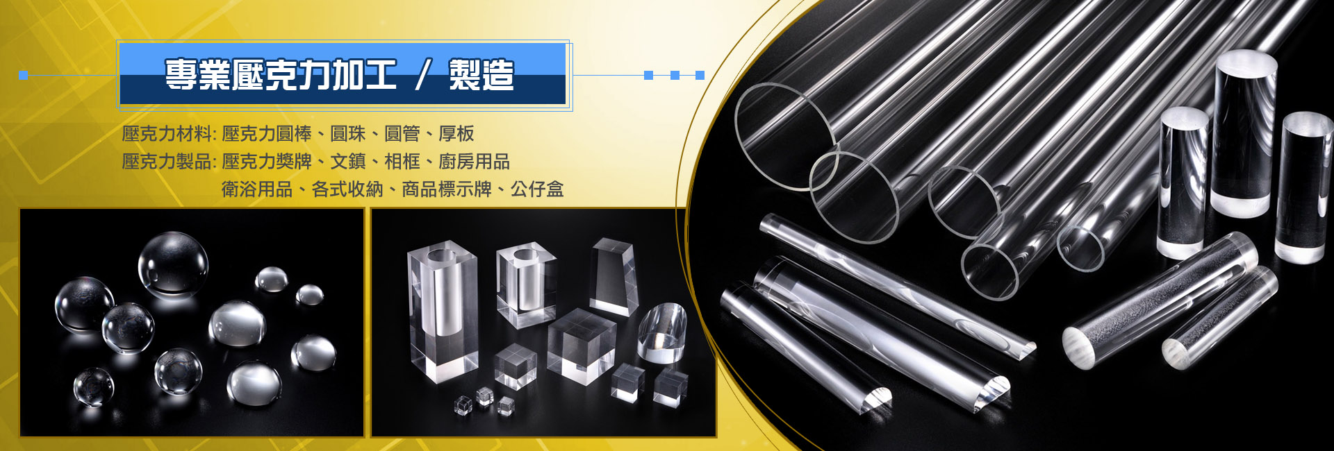 壓克力製品: 壓克力獎牌、文鎮、相框、廚房用品、衛浴用品、各式收納、商品標示牌、公仔盒。